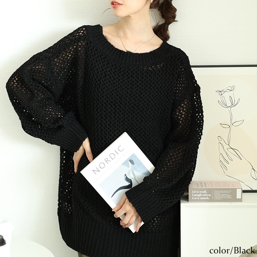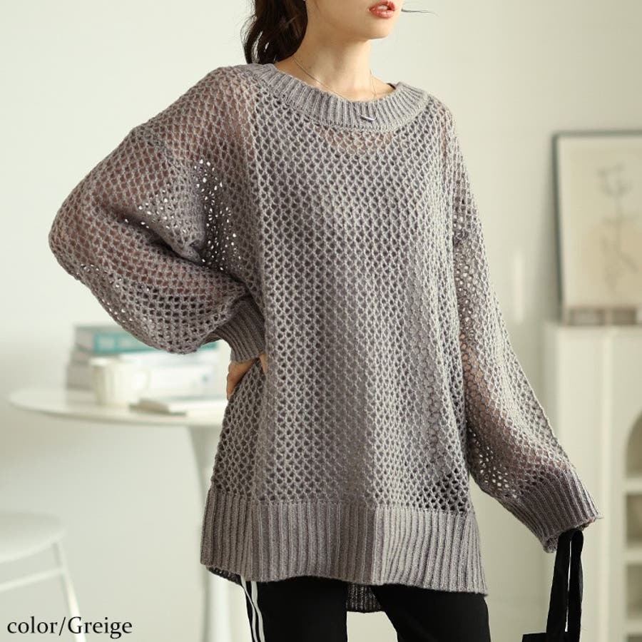 ざっくりとしたメッシュニット生地で、大人世代にも着こなしやすい透けアイテム。ニット地が季節感を演出し、ロングシーズン楽しめる重ね着トップス。インナーとの掛け算は無限大!カジュアルから綺麗めまで幅広いマッチします。