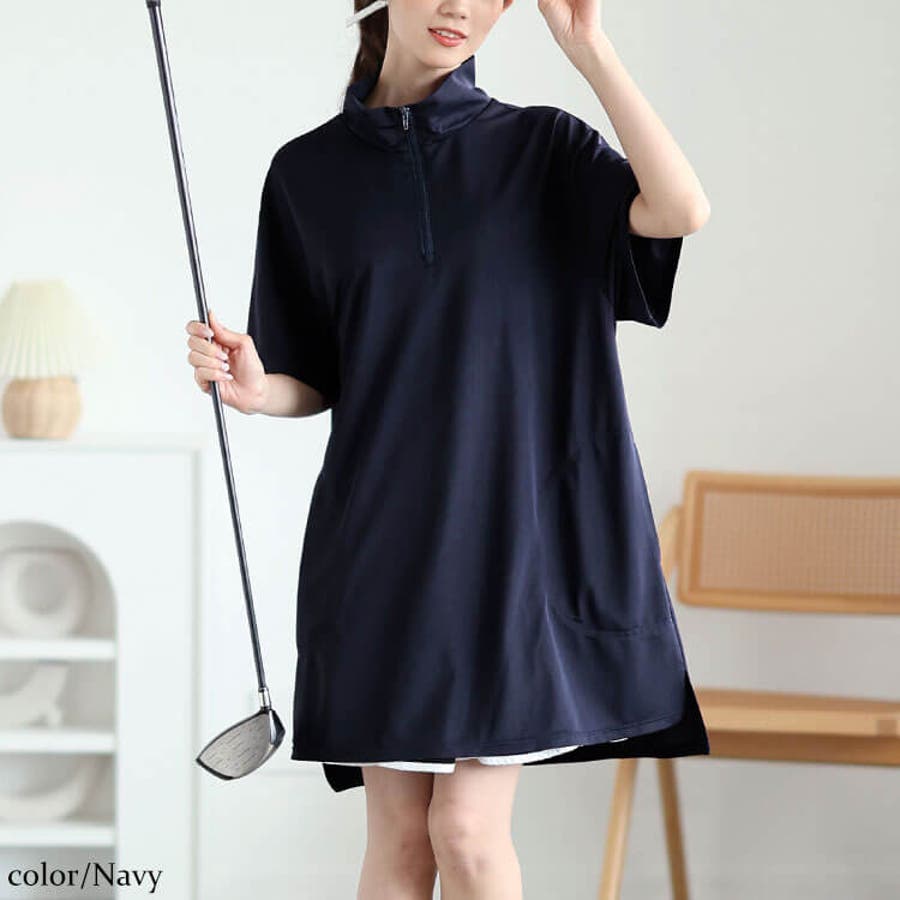 ぽっちゃりさんの声から誕生☆ヒップライン気にならないハーフZIPミニハイネックチュニック