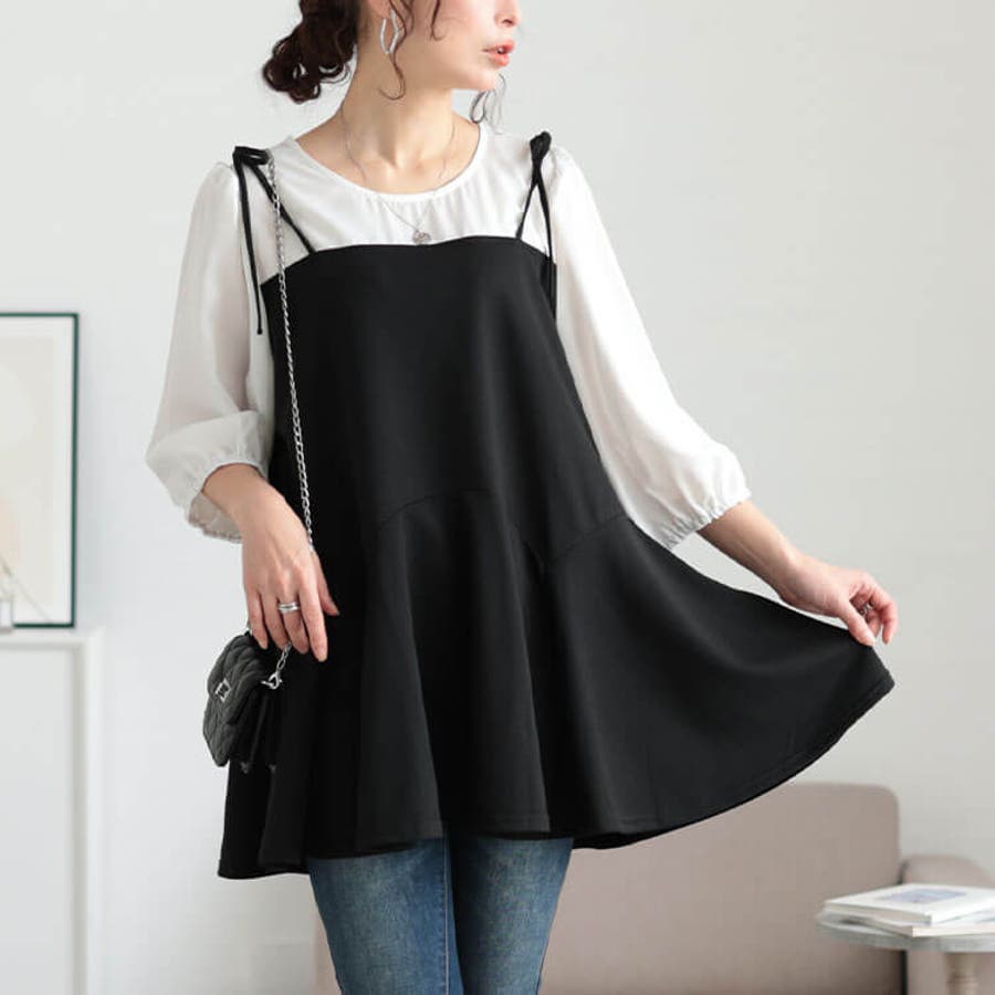 フェイクレイヤードペプラムキャミチュニック