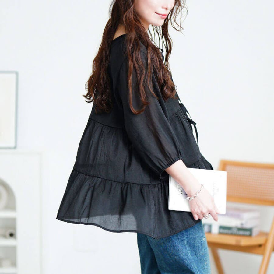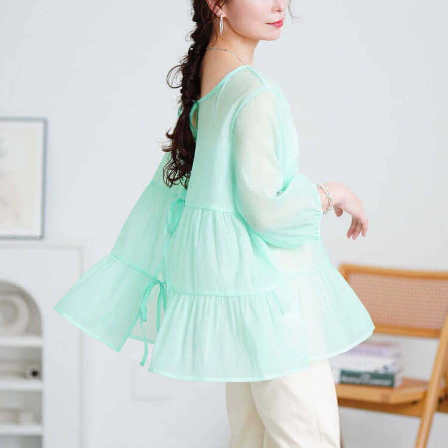 透け感とたっぷりギャザーで大人の愛らしさ纏う