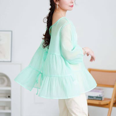 透け感のあるジョーゼット生地で女性らしい軽やかな印象でご着用していただけます♪
