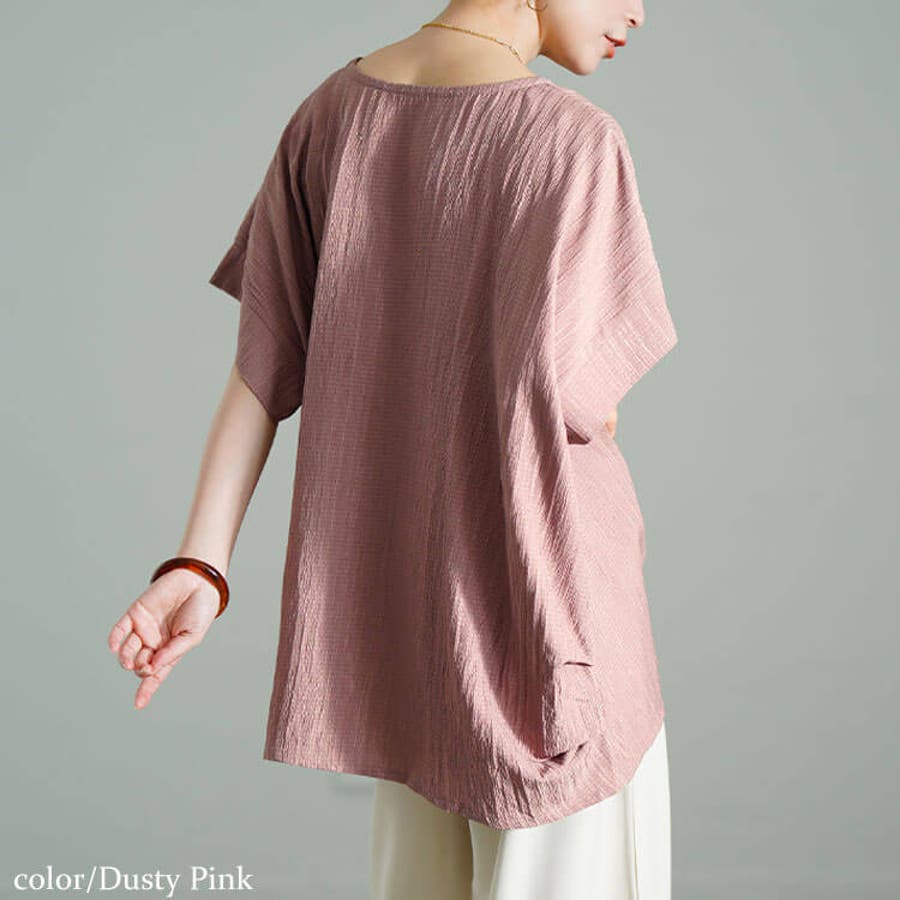 Vネックタックドルマンプルオーバー