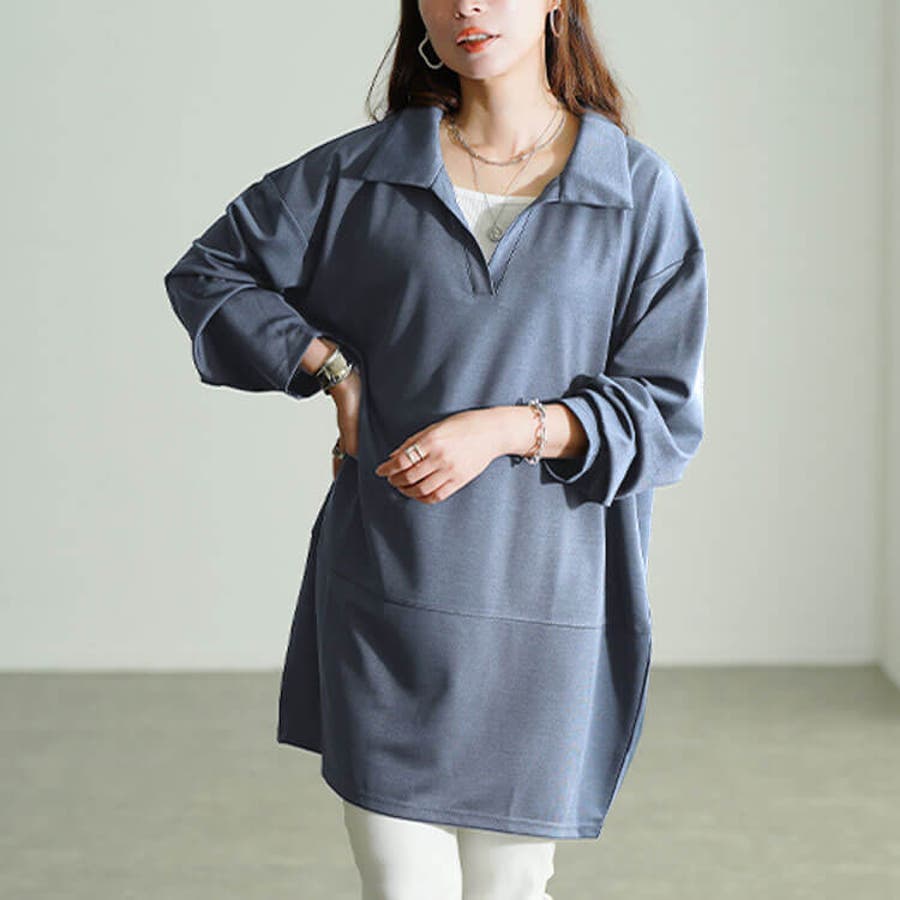 ラフに着れて即洒落見えするスキッパーカラーコクーンチュニックの登場です☆