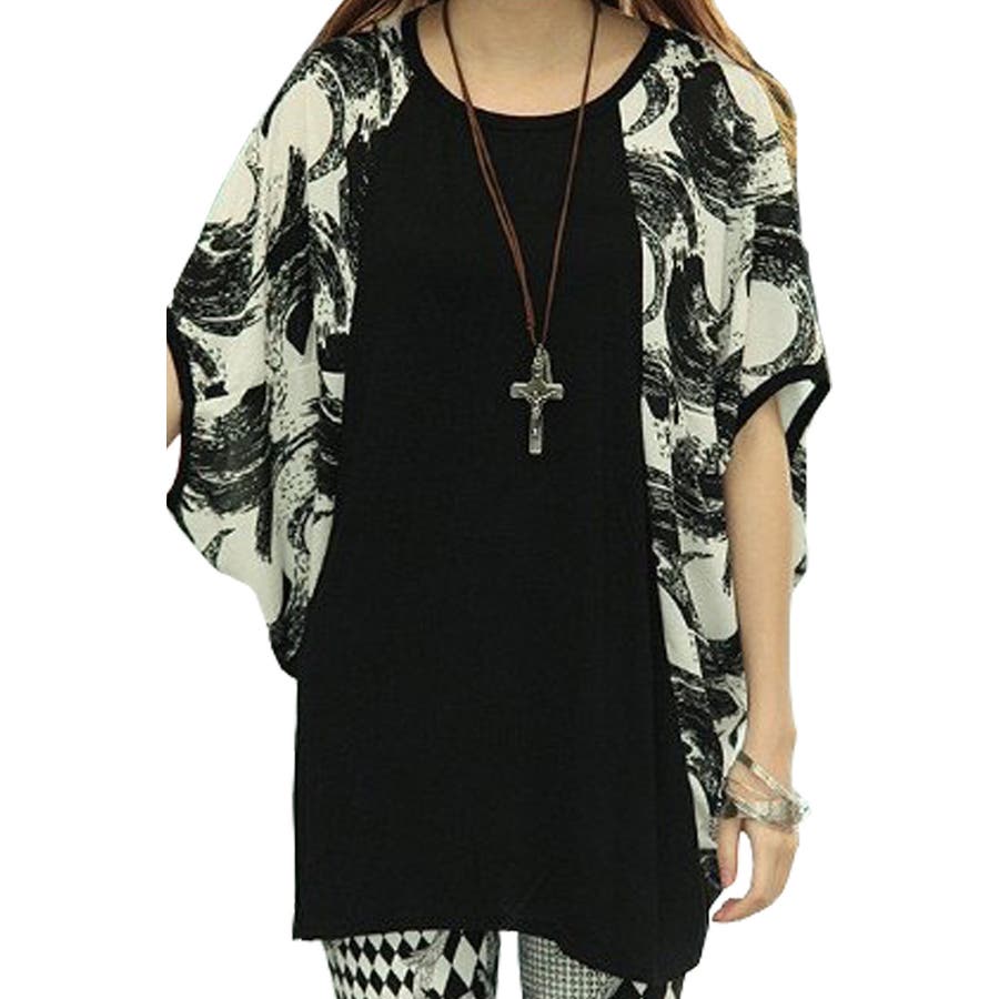 ハイレベル、サイドモノトーンプリントドルマントップス。