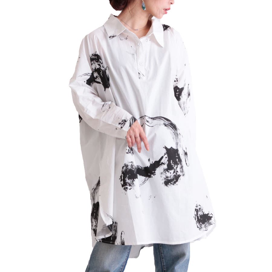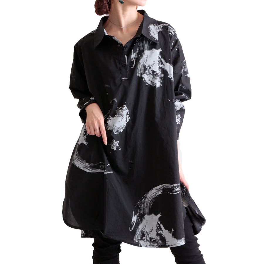 抽象的な柄がアートで大人っぽいプルオーバーシャツチュニックです。