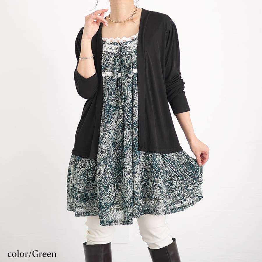 チュニックにトッパーカーデを羽織っているかのような、1枚でコーディネートが完成するラクチン便利なチュニックです☆