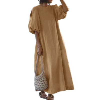 ぽわんと七分袖がオシャレなロングワンピースが登場しました♪