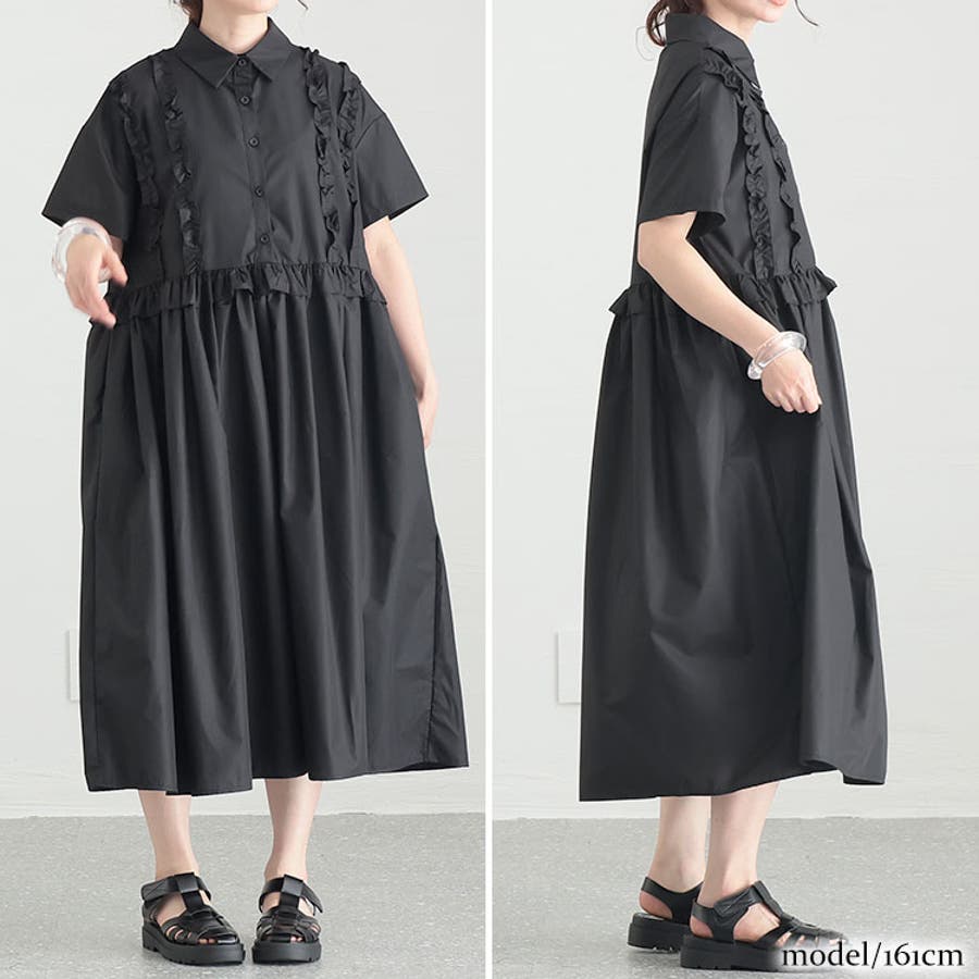 ロマンティックなフリル使いが甘さをプラスしてくれるシャツワンピースです。