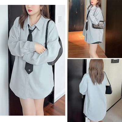 可愛いチャーム付きのネクタイが付いたロングシャツです。