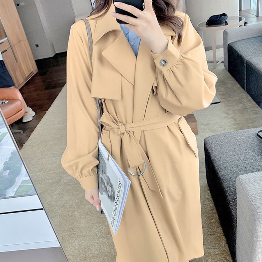 どんなコーデ、シーンにも使えるベルト付きのトレンチコートです。
