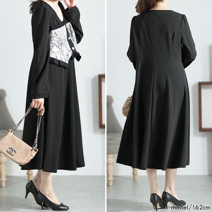 胸元の大人柄が上品、ロング丈で体型カバー