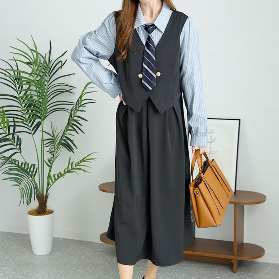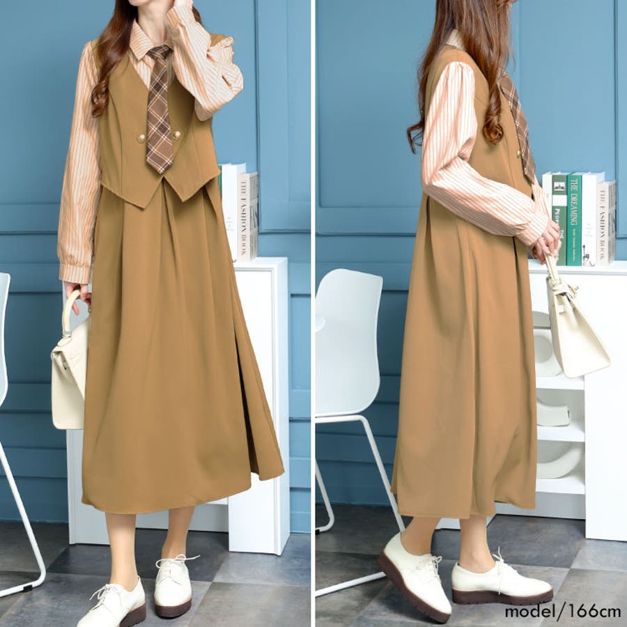 シャツ&ベスト&スカートがドッキングされており、これ一枚でコーデが完成。