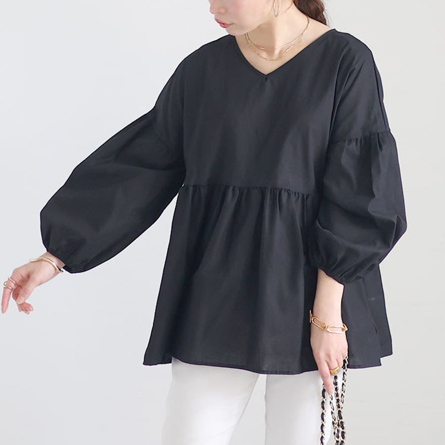 パフスリーブが主役のペプラムトップスです。