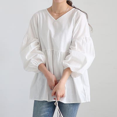 パフスリーブペプラムトップス