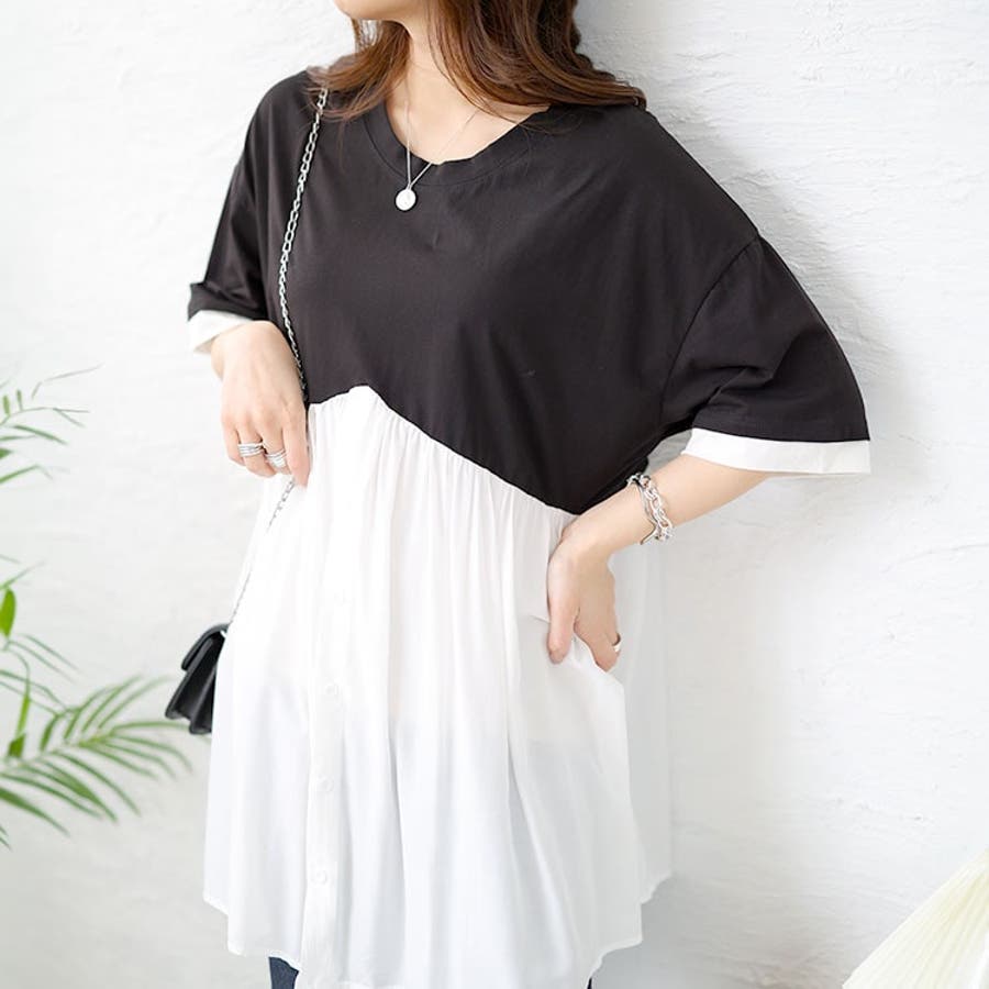 異素材ドッキングチュニック
