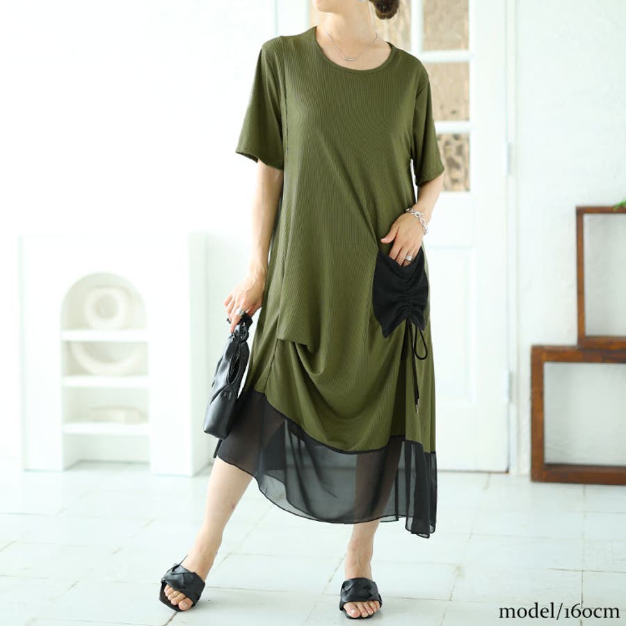 大きいサイズレディース ワンピース ビックポケット付きアシンメトリーワンピース