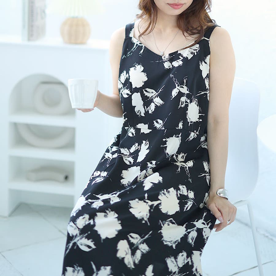 大きいサイズレディース ワンピース 花柄Aラインキャミソールワンピース