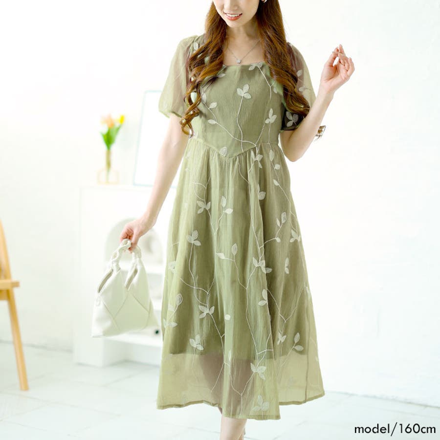 ナチュラルなリーフ柄で大人ガーリーなワンピースです。