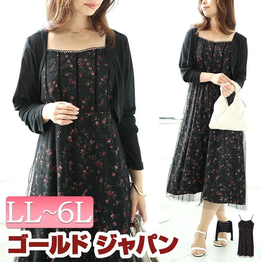大きいサイズレディース ワンピース ボレロ&ドットチュールレイヤード花柄キャミワ…