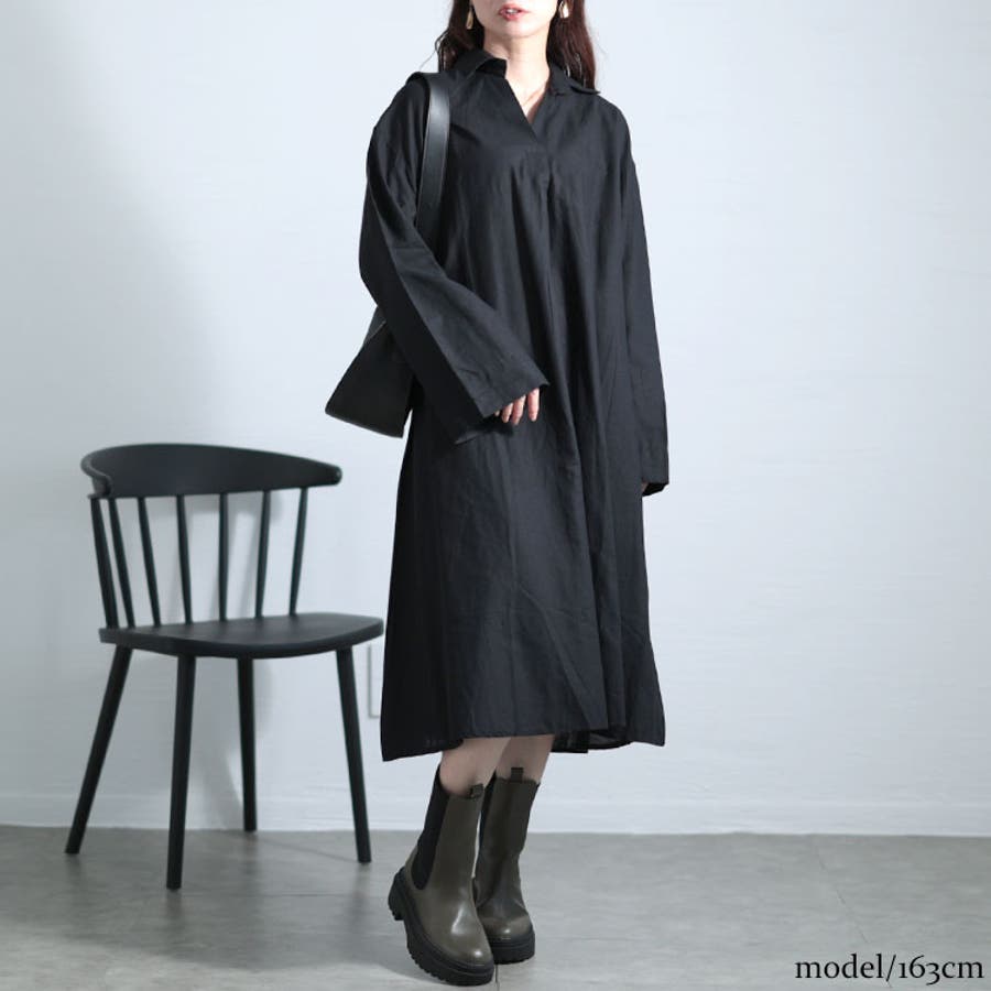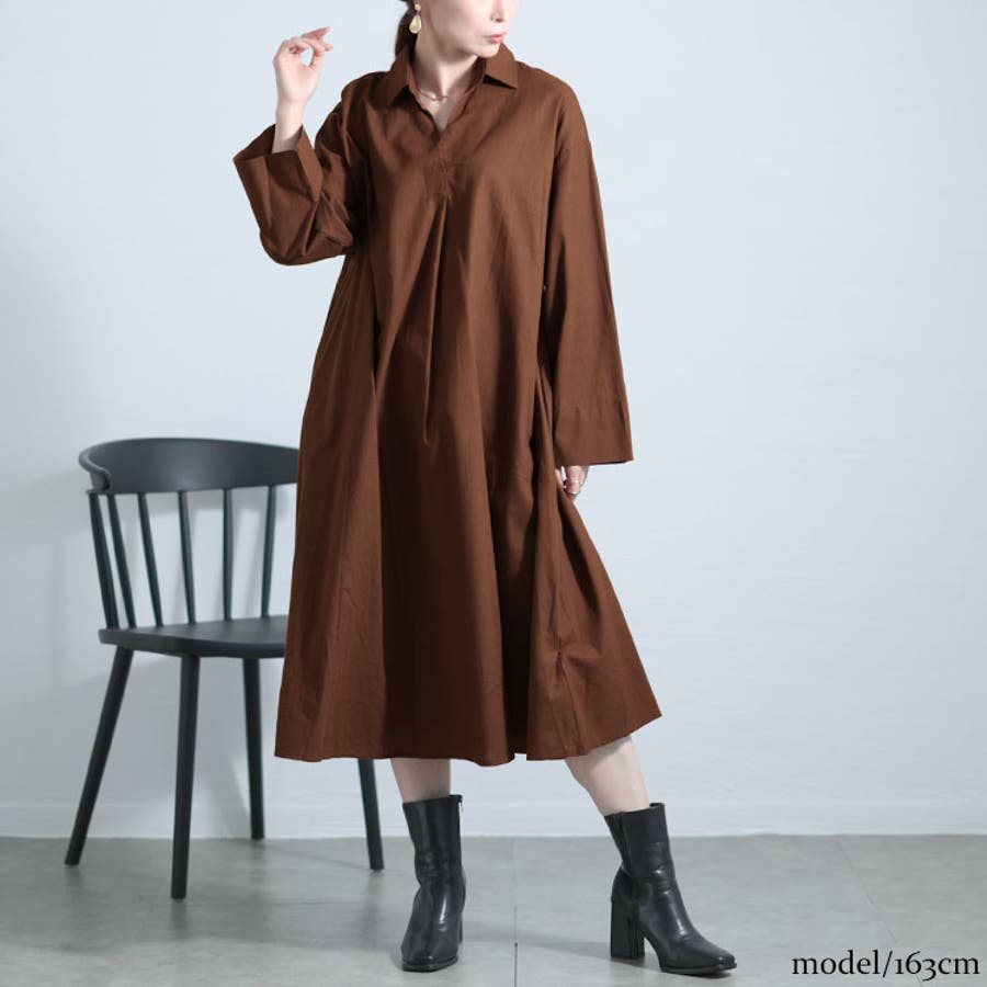 大きいサイズレディース ワンピース スキッパー襟コットンワンピース