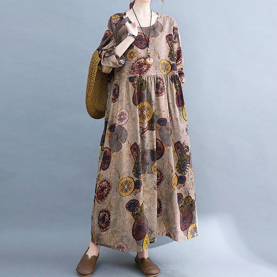 大きいサイズレディース ワンピース ヴィンテージ柄Aラインワンピース