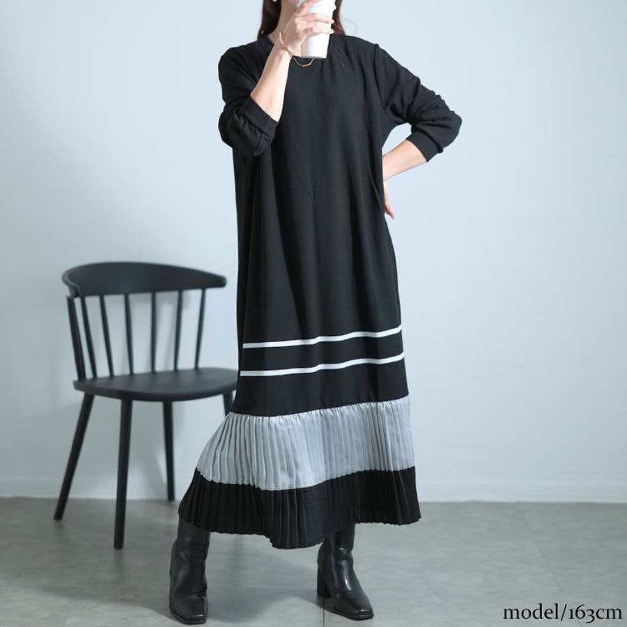 大きいサイズレディース ワンピース 裾プリーツ切替えロングワンピース