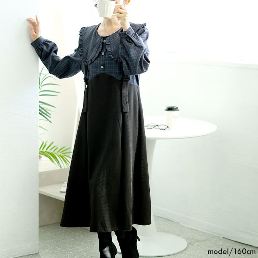 大きいサイズレディース ワンピース チェック柄ブラウスドッキングワンピース
