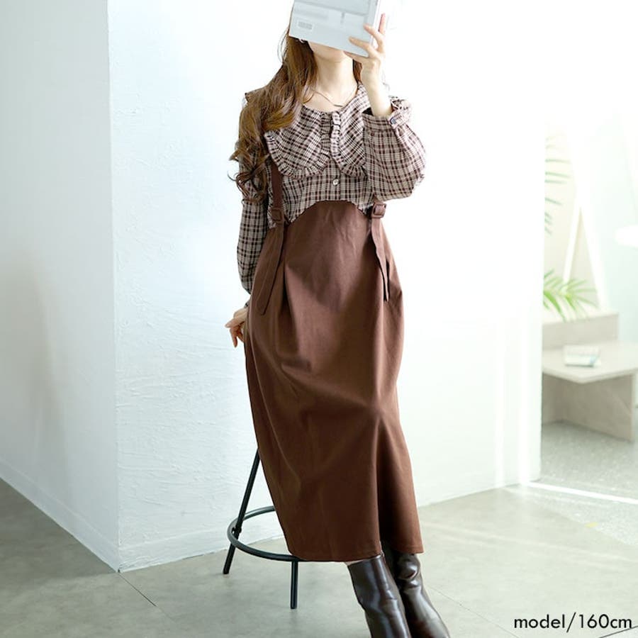 チェック柄ブラウスドッキングワンピース