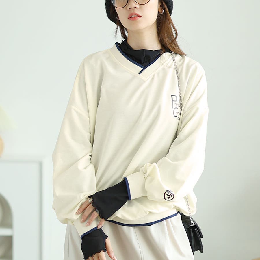 Vネックロゴプリントスウェット