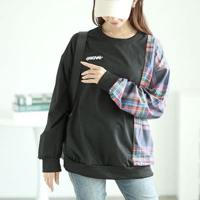チェック柄切替えスウェットトレーナー