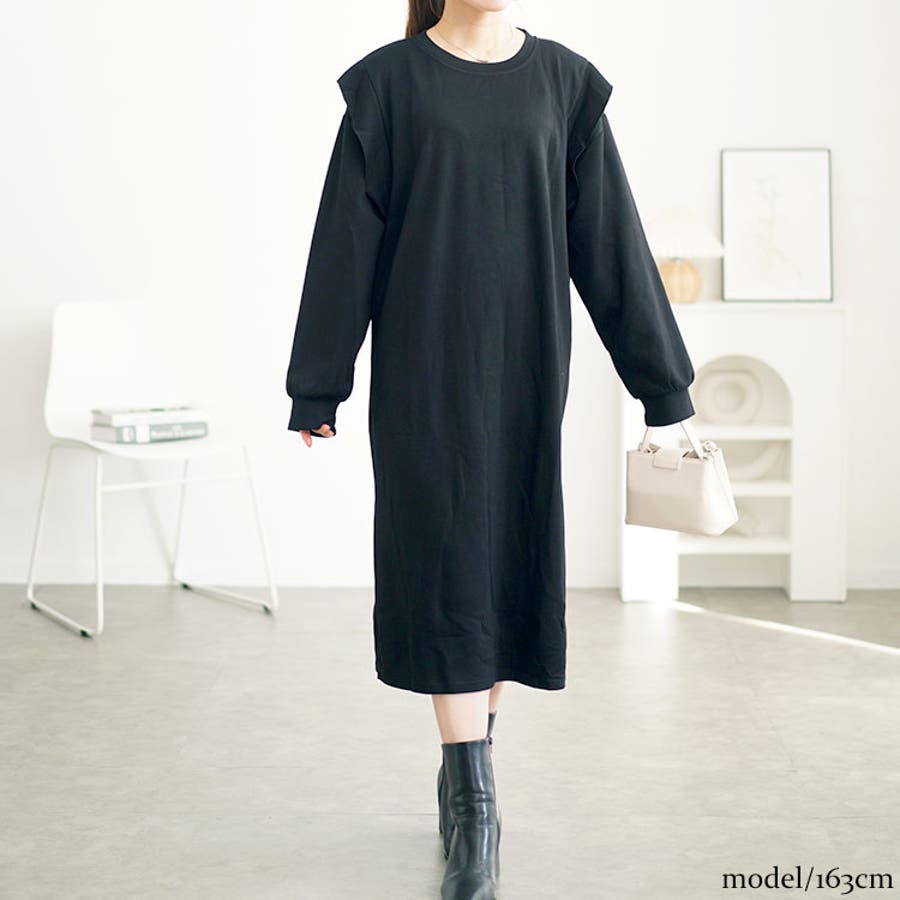 大きいサイズレディース ワンピース 肩フリルスウェットワンピース