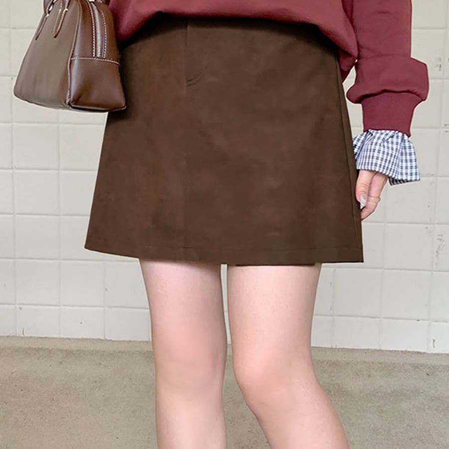 台形シルエットでシルエットをきれいに見せ美脚効果もあります。