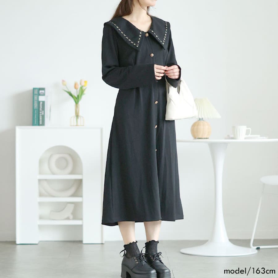 大きいサイズレディース ワンピース ビックカラー飾りボタンロングワンピース