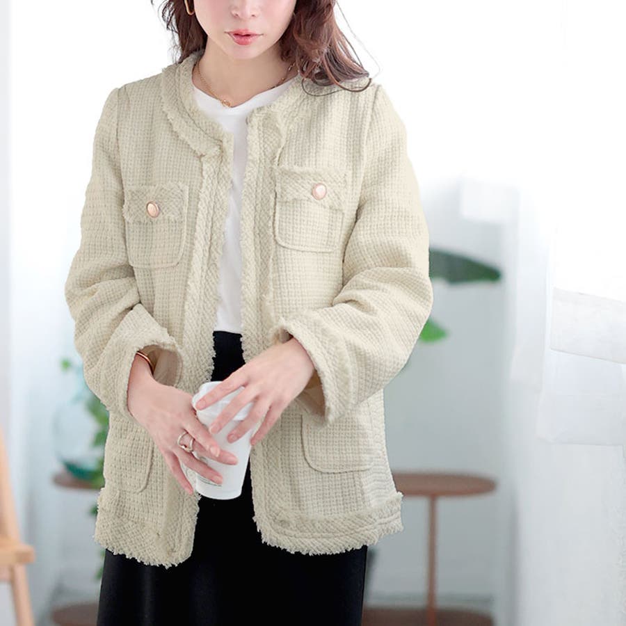 すっきりとした印象のジャケットなので着痩せ効果もばっちり!