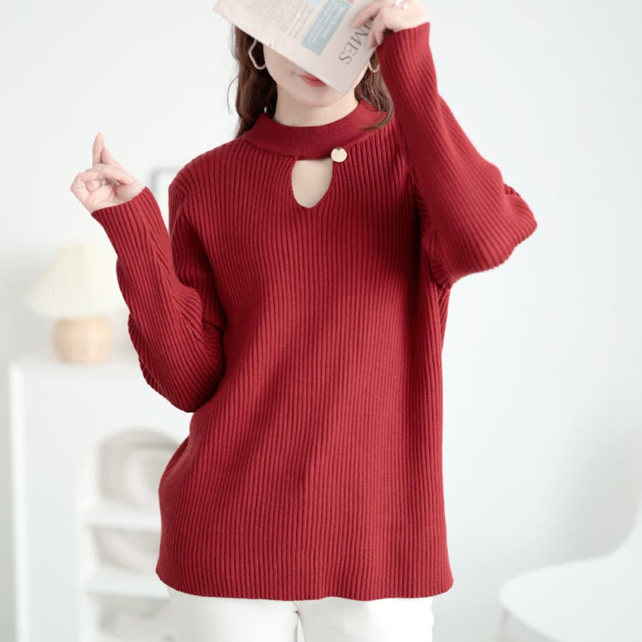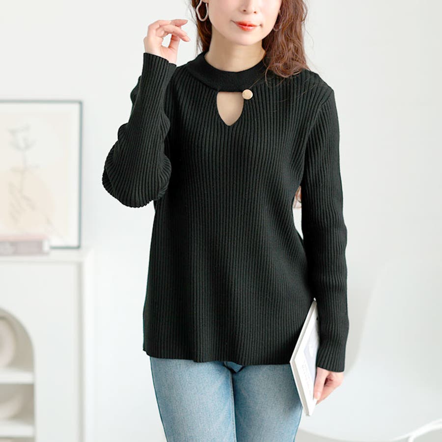 胸元カットアウトリブニットトップス