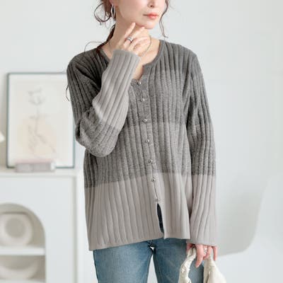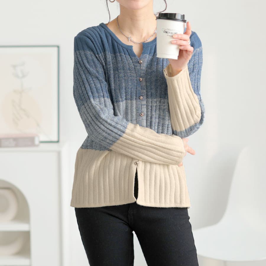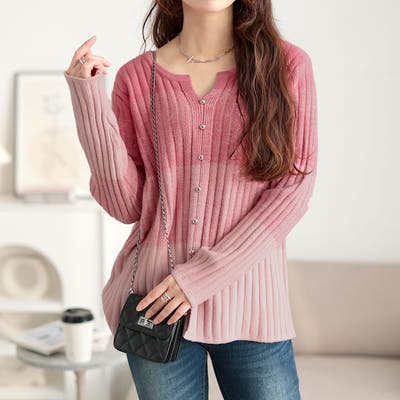 キーネックグラデーションリブニット