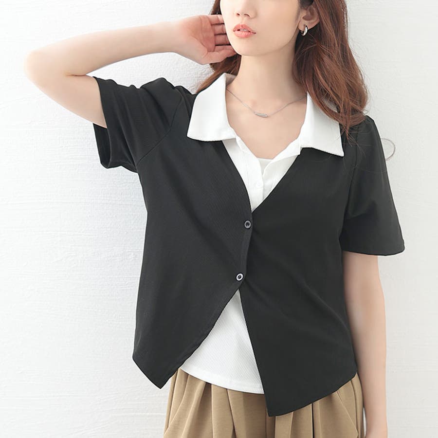 カジュアルからキレイめまで幅広く使えるレイヤード風のリブカットソーです。