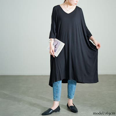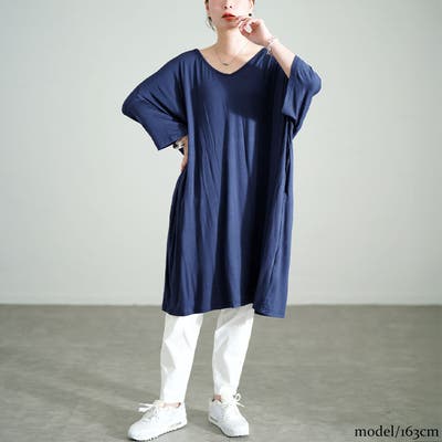ゆったりとしたサイズ感が魅力のVネックチュニックワンピースです。