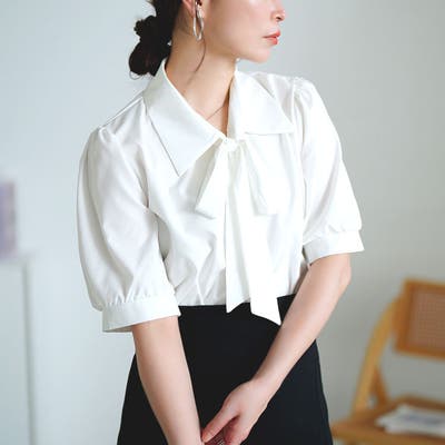 きちんと感も可愛さも妥協しない、ボウタイブラウスです。