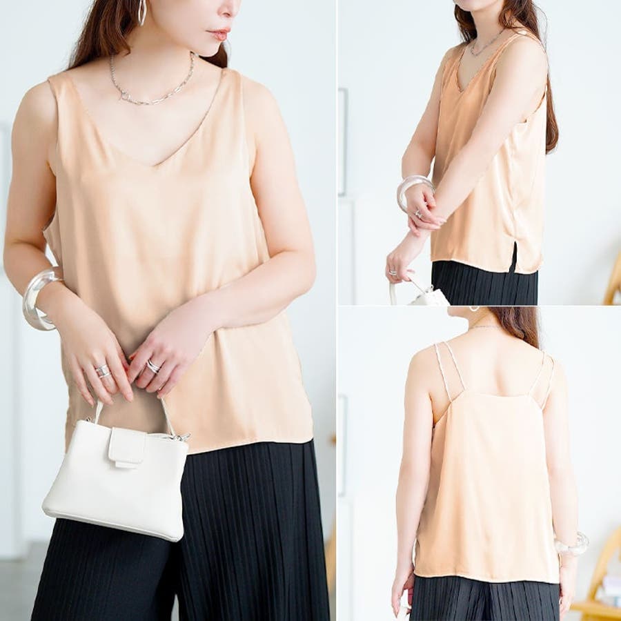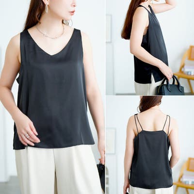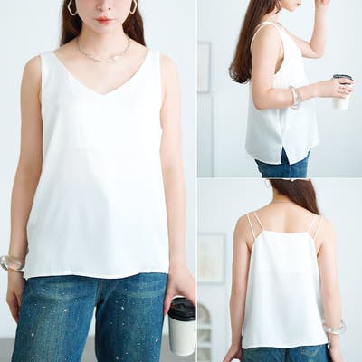 バックストラップVネックノースリーブトップス