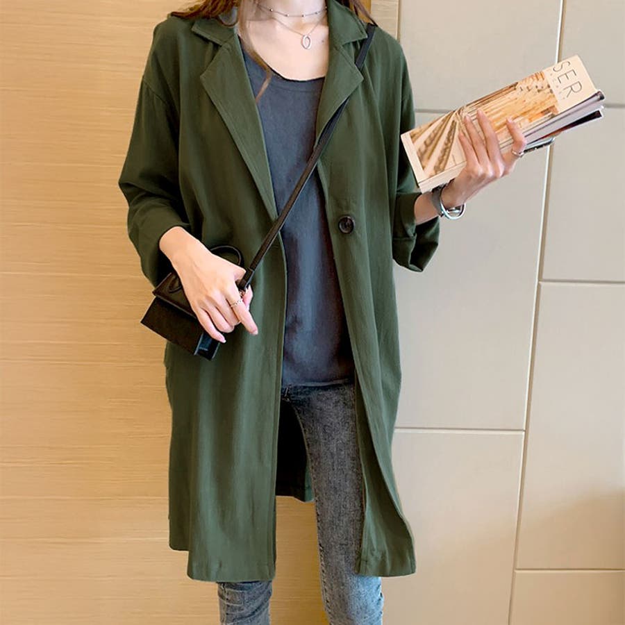 太ももまで隠れる安心丈が特徴のライトアウター。