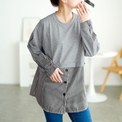 カットソーとストライプシャツをドッキングしたストライプシャツです。