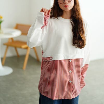 レイヤード風ストライプシャツ