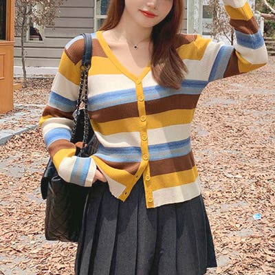 カラフルボーダーVネックニットカーディガン