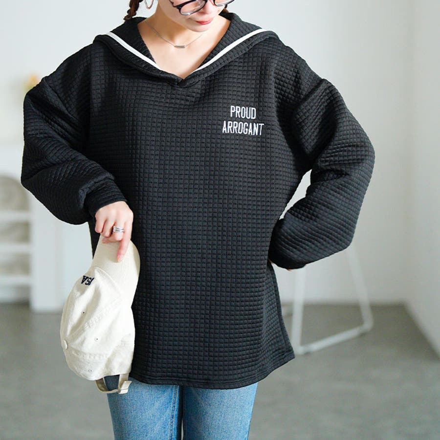 セーラーカラーワッフルトップス