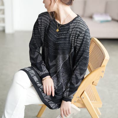 大胆な幾何学模様と上品なラメが印象的なラメニットチュニックです。