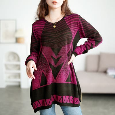 幾何学模様ラメジャガードニットチュニック