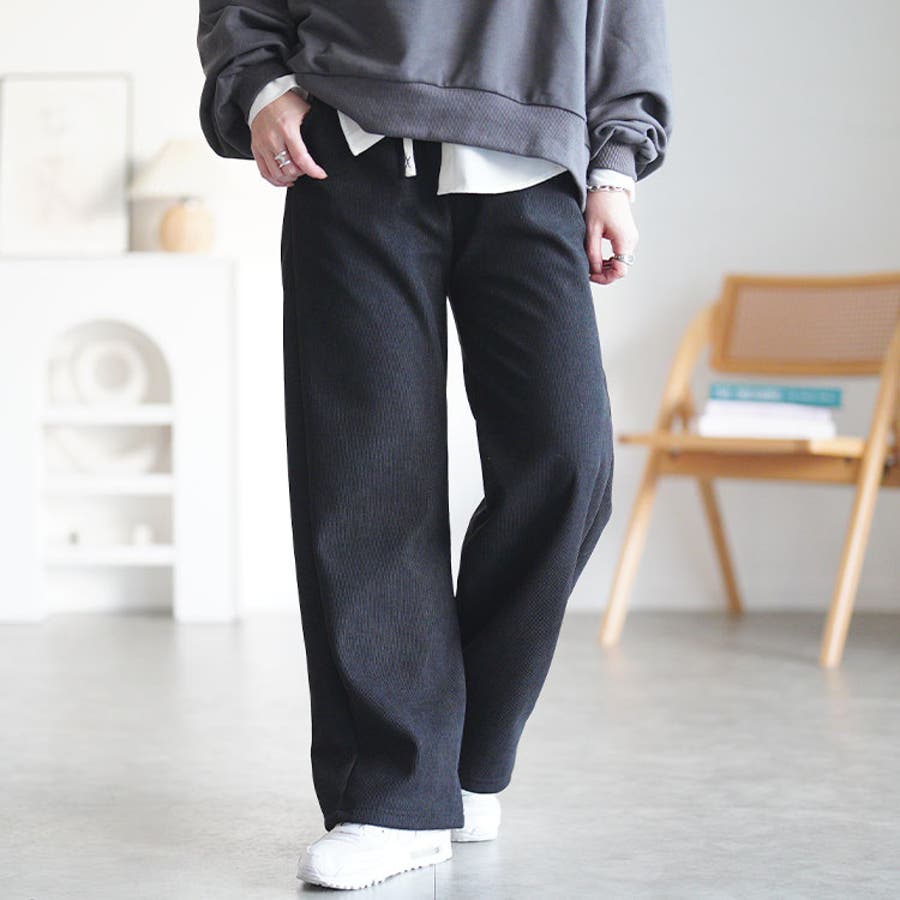 デイリーに取り入れやすい裏起毛ストレートパンツ。