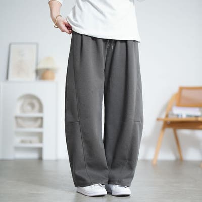 立体感のあるバレルシルエットが特徴のワイドパンツ。