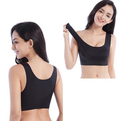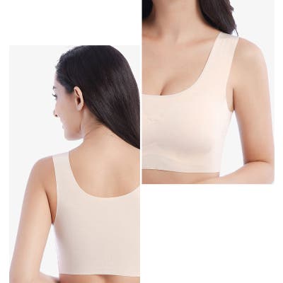 無縫製で圧着プレス縫製のシームレスタンクトップブラなので肌が敏感な方も安心して着用いただけます。